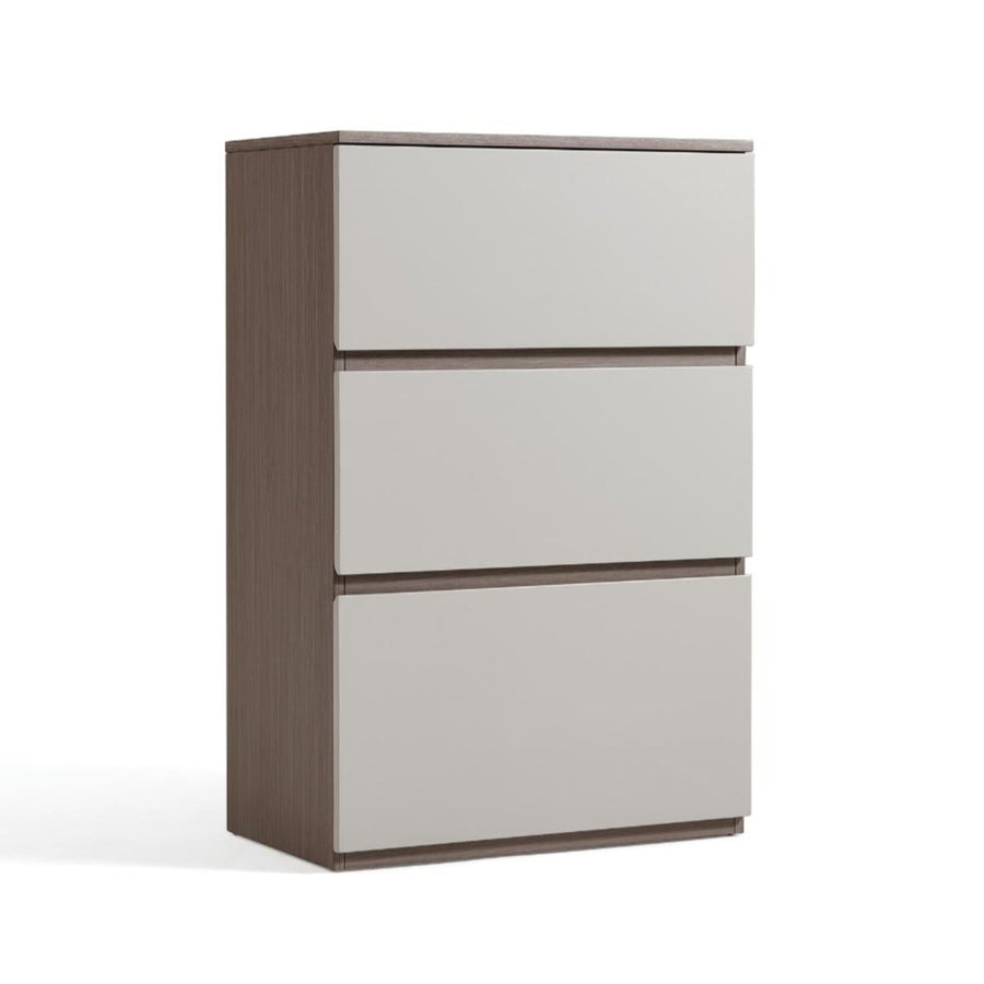 This sleek chest of drawers offers a clean and modern design with three spacious storage compartments. Each drawer glides smoothly on high-quality ball-bearing rails, ensuring effortless use. The chest features a sturdy build and a melamine surface for durability, making it both practical and stylish. The hidden handle design provides an unobtrusive, streamlined look that complements any contemporary space.