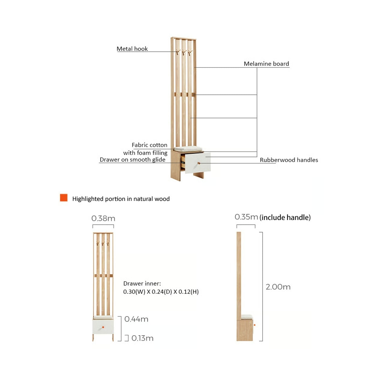 Integrated Entryway Solution: Combines a coat rack, comfortable shoe bench, and storage drawer into one compact, functional piece for your home.