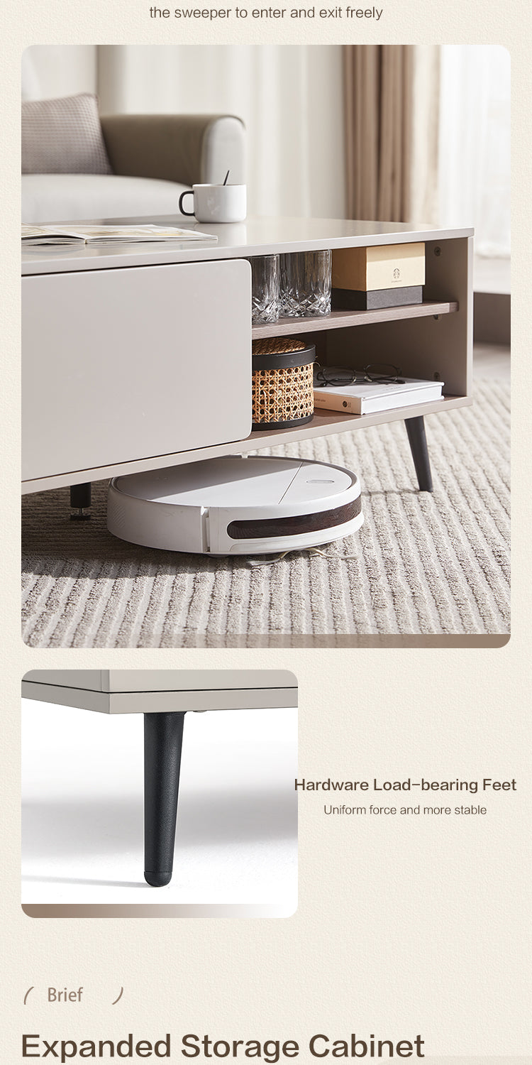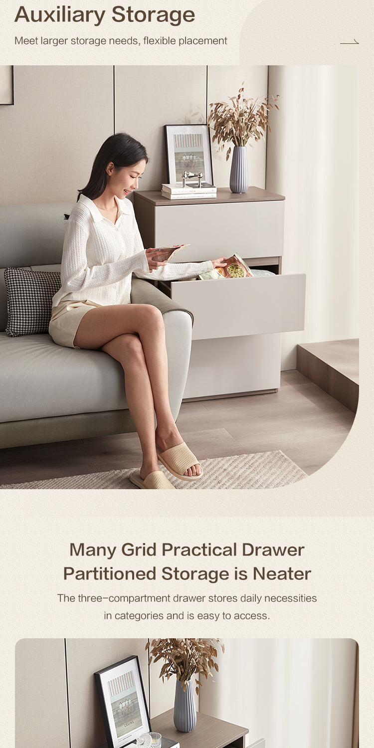 Cable Management: Streamlines and organizes wires. Dust-Free Drawer Storage: Keeps items clean and hidden. Smooth Drawer Slides: For easy opening and closing. Removable Shelf: Adaptable storage for various needs. Elevated Design: Simplifies cleaning and enhances the look.