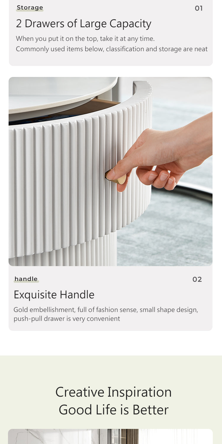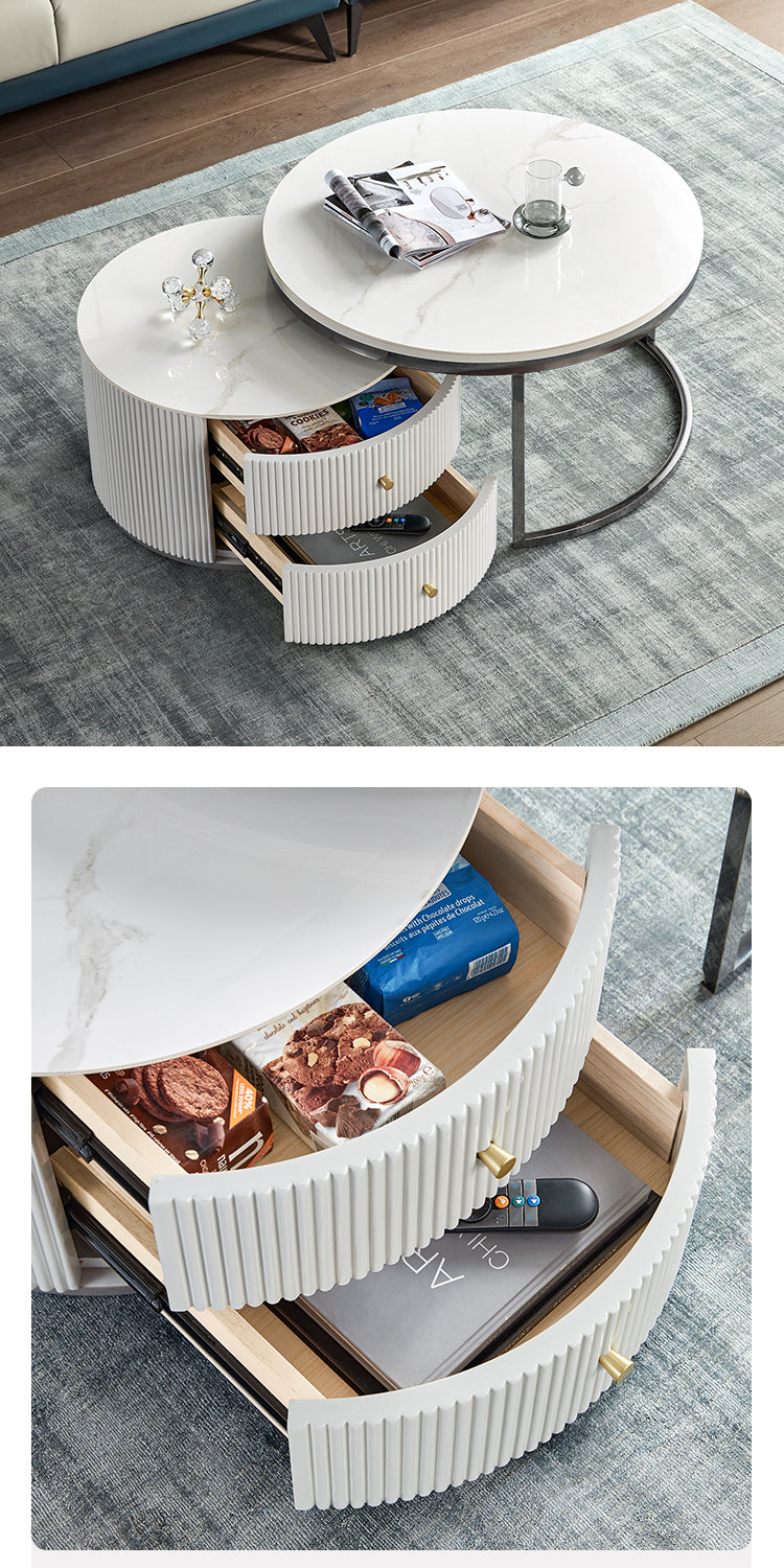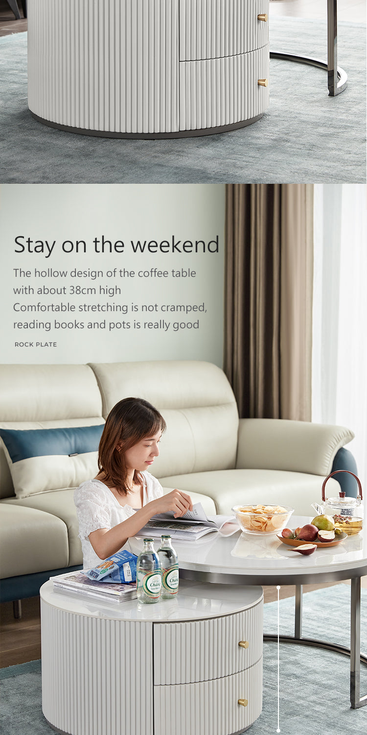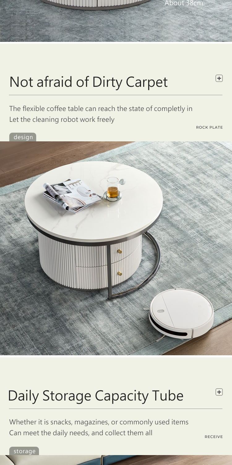 Exemplifying modern sophistication, this low-profile entertainment unit boasts a glossy sintered stone tabletop that harmonizes with a melamine board structure. The natural mineral processing of the tabletop yields a chemical, heat, and scratch-resistant surface, elevating the unit's resilience and elegance.