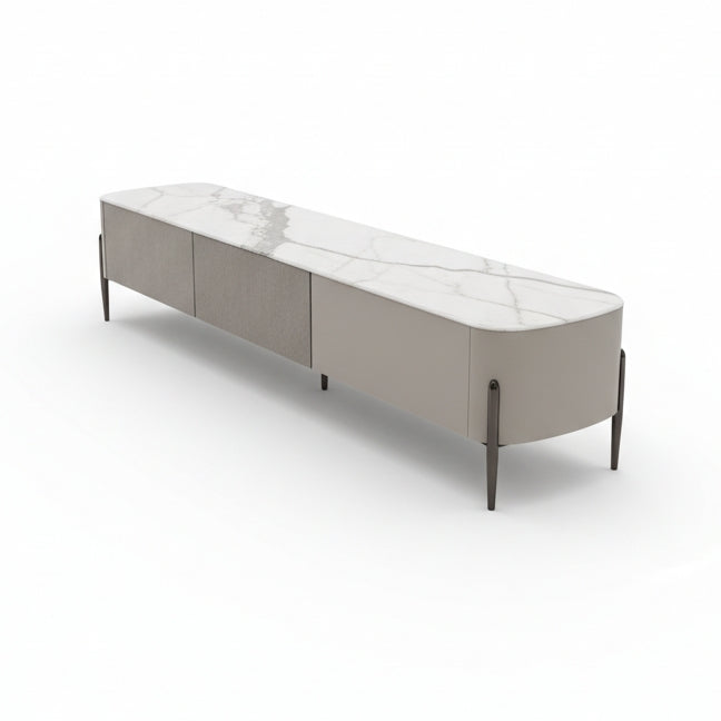 Premium Sintered Stone Surface: A highly durable, scratch and stain-resistant surface mimics genuine marble, perfect for supporting large modern flat-screen televisions.
