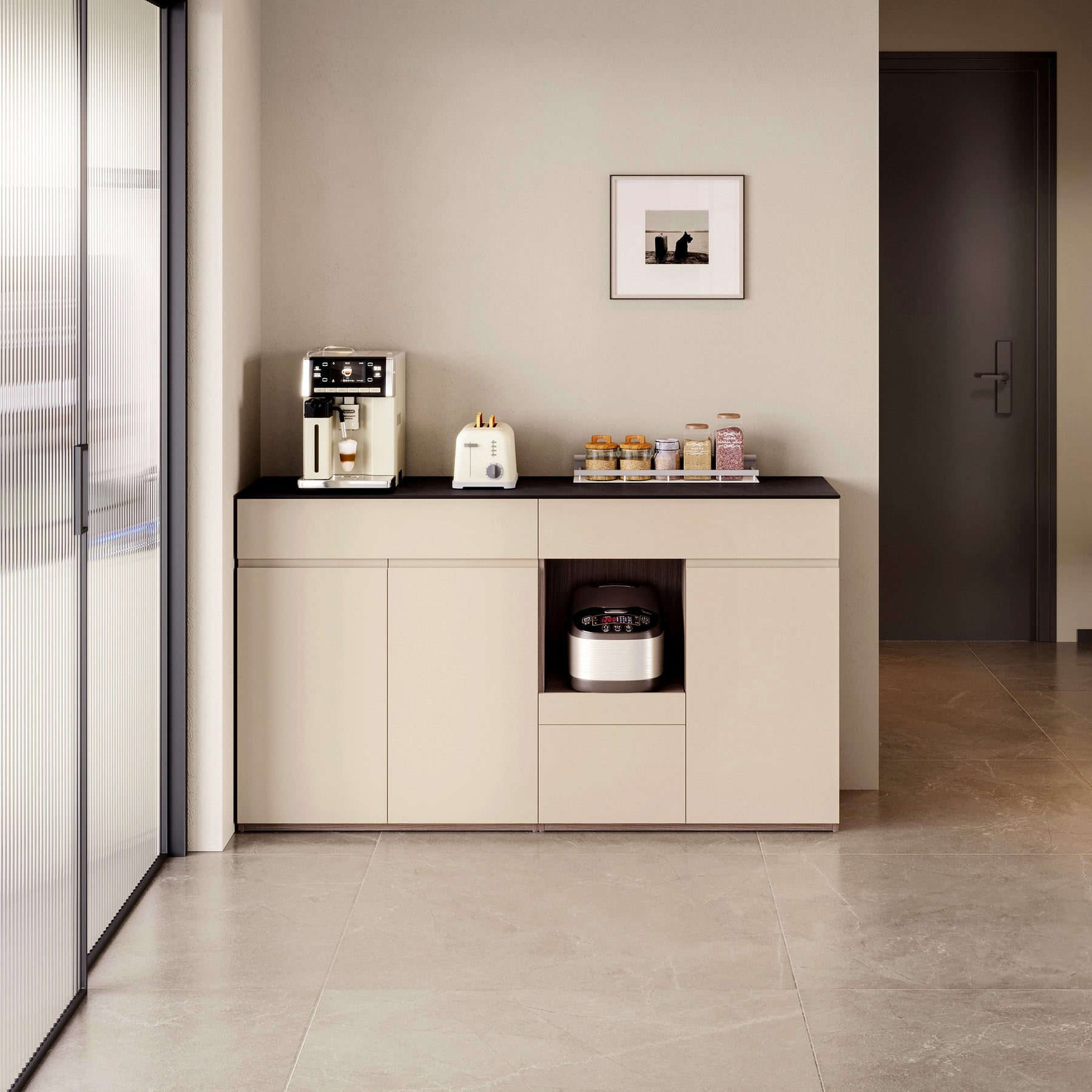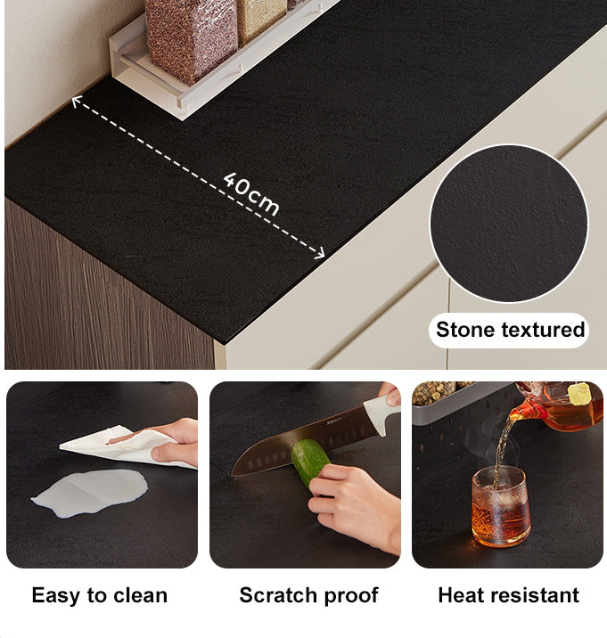 Stone-Textured Glass Top:Stone-textured tempered glass top provides a scratch-resistant surface with elegant matte sheen and visual depth.