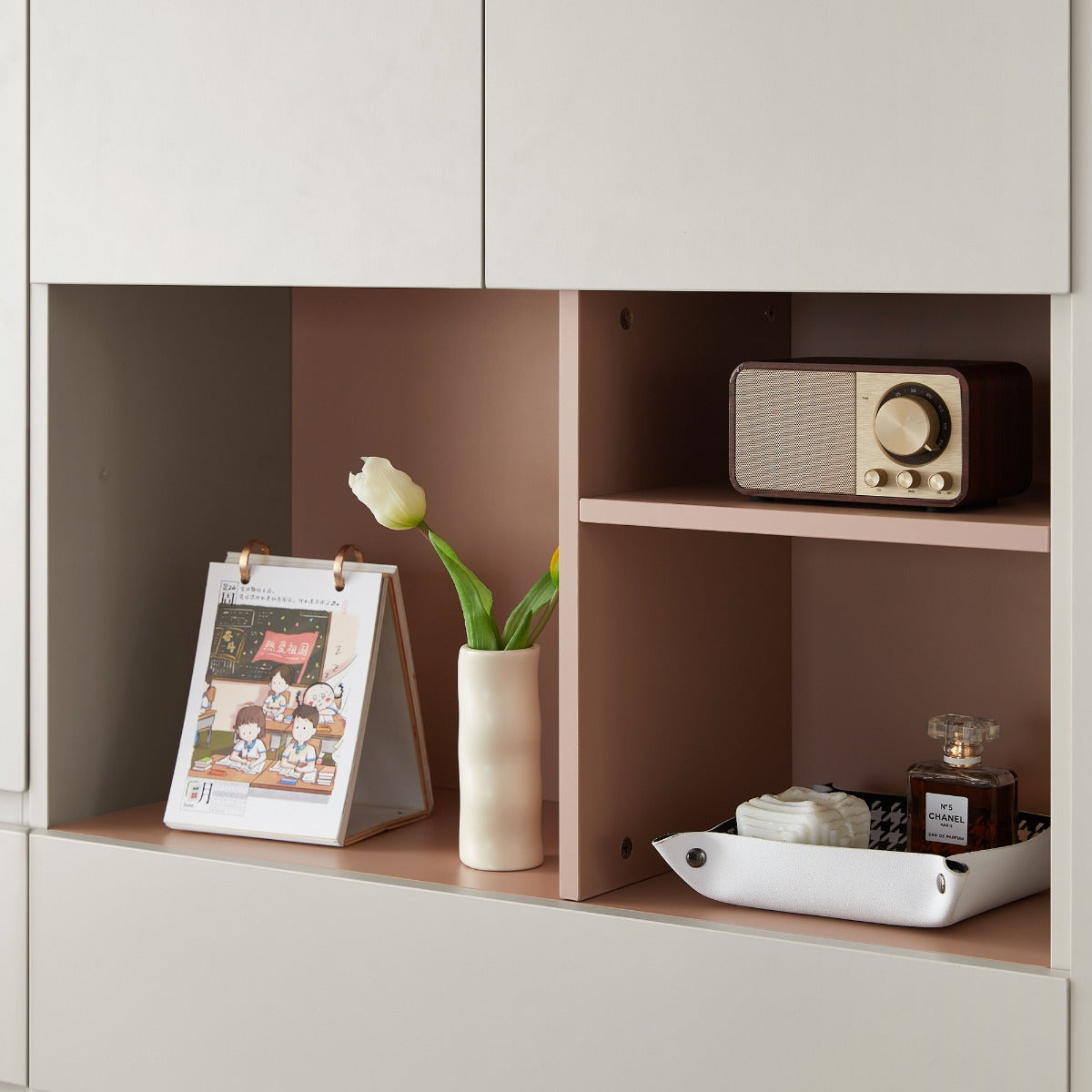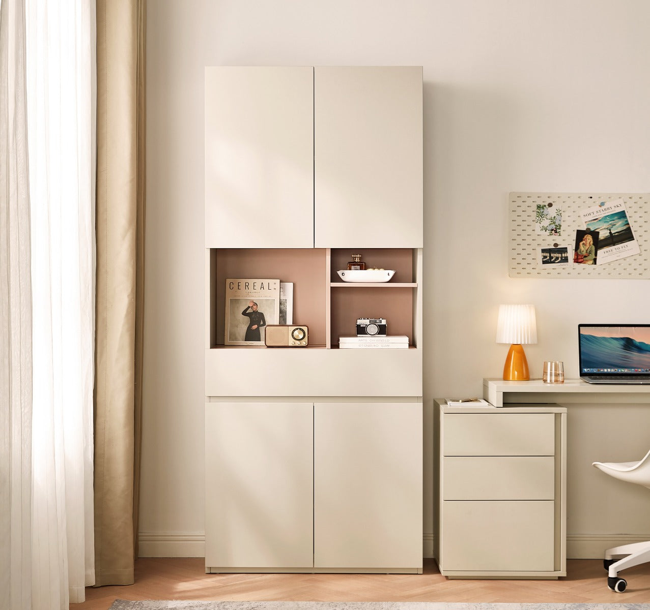Adjustable Shelving:Three-level removable shelves adapt to tall or compact items, offering customizable storage configurations. Ventilated Design:Integrated ventilation holes promote airflow to reduce moisture buildup and protect stored fabrics. Durable Melamine Finish:Smooth melamine surfaces resist stains and scratches while providing an easy-to-clean, low-maintenance finish. Compact Vertical Cabinet:Slim, tall profile maximizes vertical storage in narrow spaces without sacrificing organizational capacity.