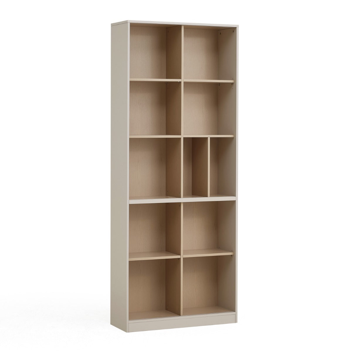 Adjustable top and bottom shelves provide flexible configuration for books, décor, or small electronics, while the included wall-securing kit enhances stability; low-maintenance melamine resists scratches and wipes clean easily for everyday use.