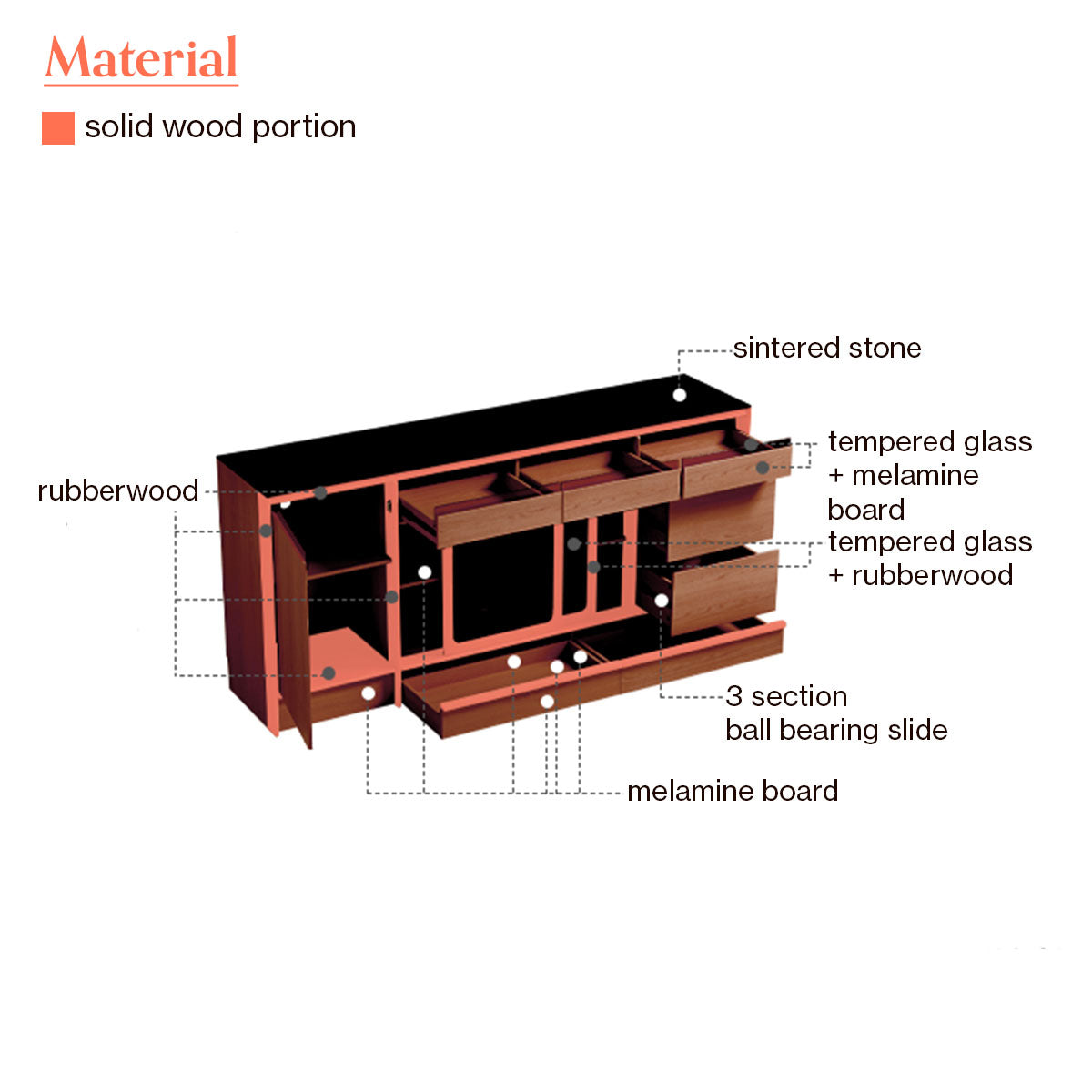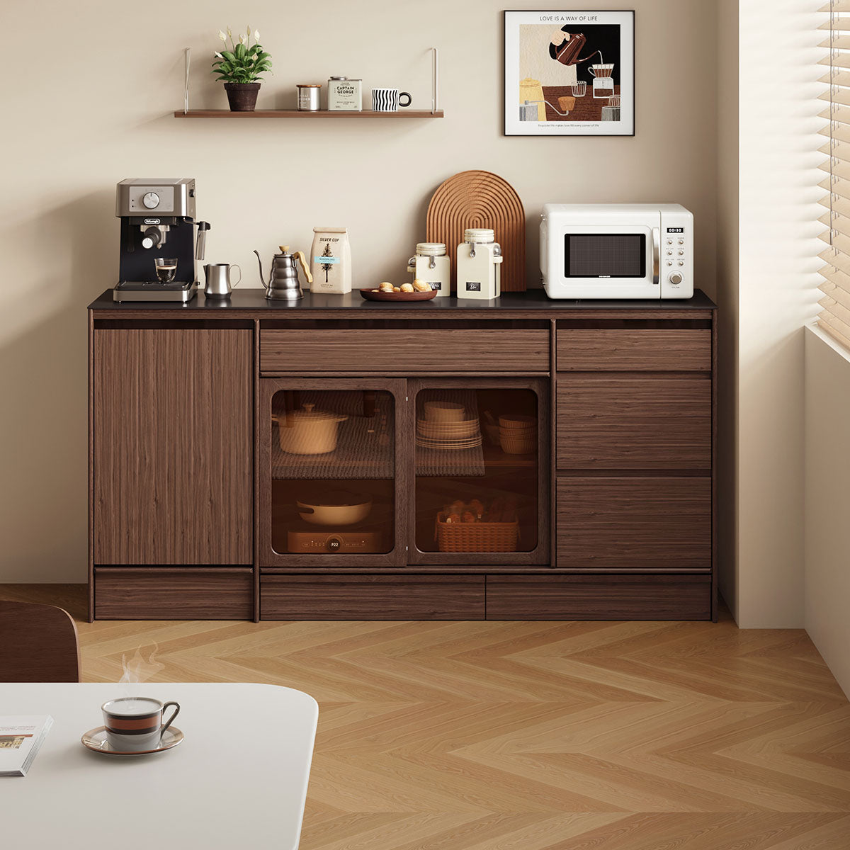 Adjustable Internal Shelving:Adjustable shelves and spacious drawers provide customizable organization for varied dishware, media, or decorative items.
