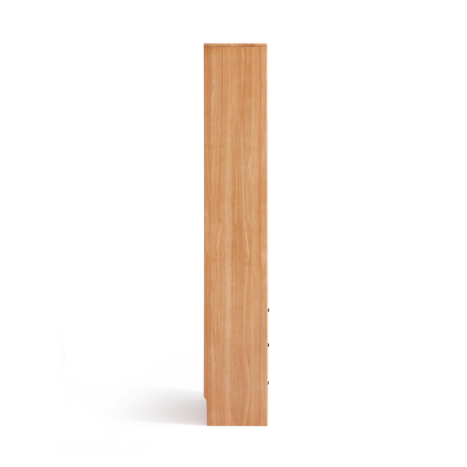 Compact vertical profile optimizes small spaces, bringing refined texture and neutral wood tone to living rooms, home offices, or bedrooms; designed for easy styling and everyday use with straightforward maintenance.