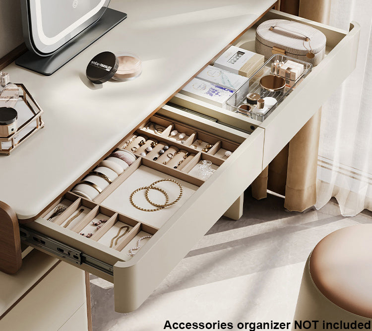 Five Deep Drawers:Five roomy drawers provide organized, concealed storage for office supplies, cosmetics, and personal accessories.