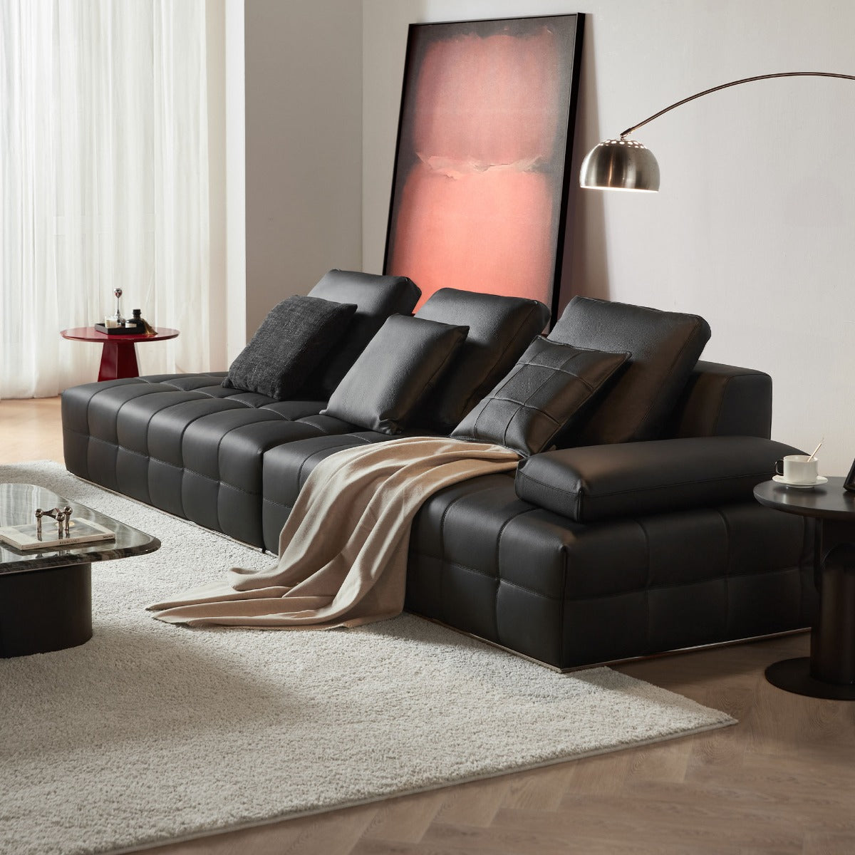 Experience refined relaxation with this sofa—genuine leather and deep seating designed for sophisticated living and peaceful moments.