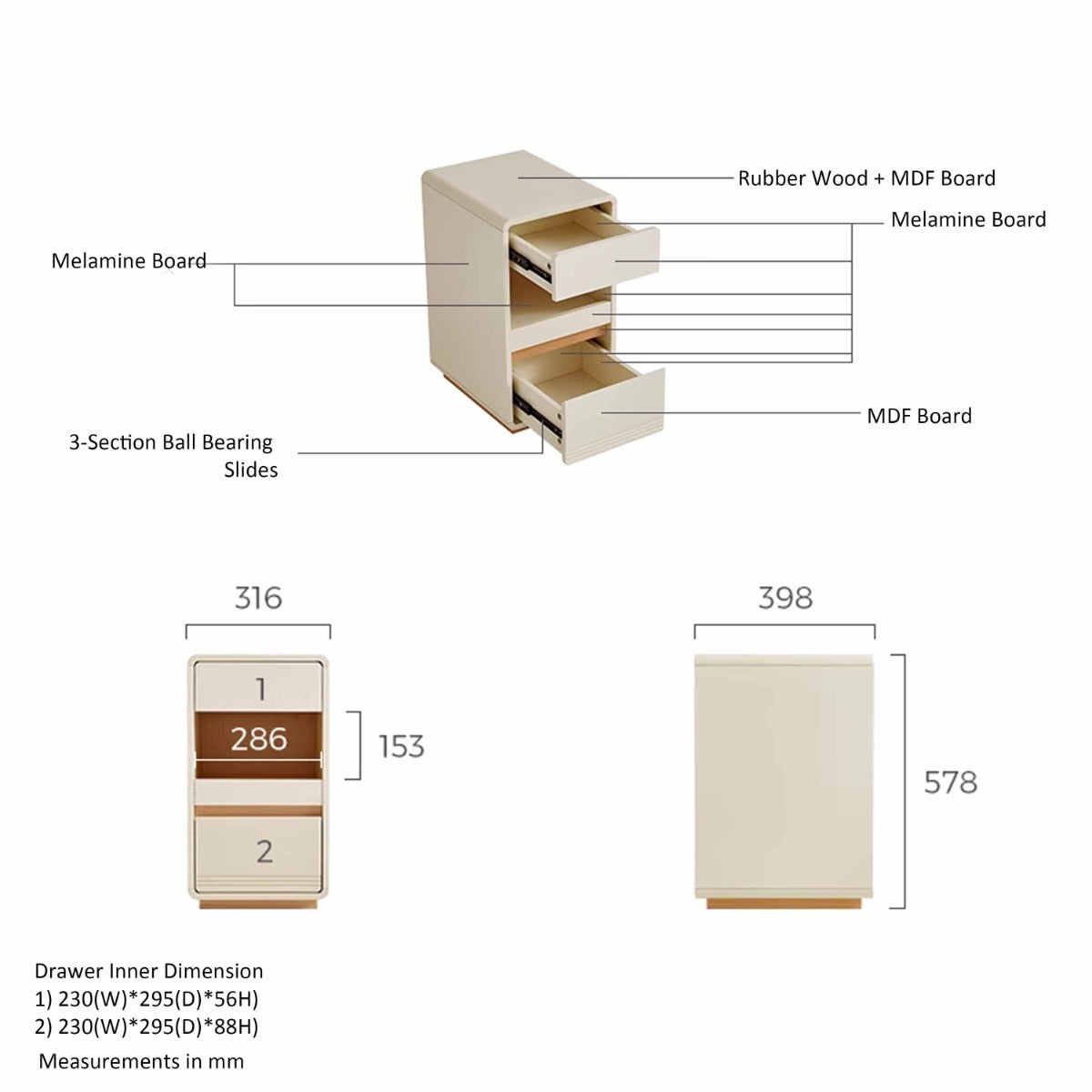 Durable Construction:Painted melamine and kiln-dried rubberwood on MDF deliver scratch-resistant strength and long-lasting structural stability performance.