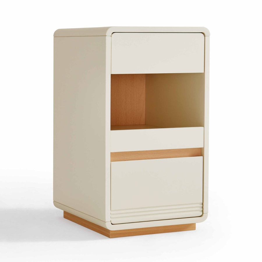 Compact Storage Design:Open shelf plus drawers maximize vertical storage, ideal for tight spaces and modern small-room organization.