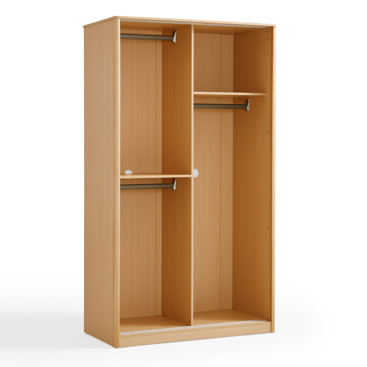 Smooth sliding door rail and rust-resistant aluminium hanger rods enable quiet, space-saving operation; integrated ventilation prevents moisture build-up and keeps clothing fresh, making this sliding door wardrobe ideal for organized, moisture-resistant storage.