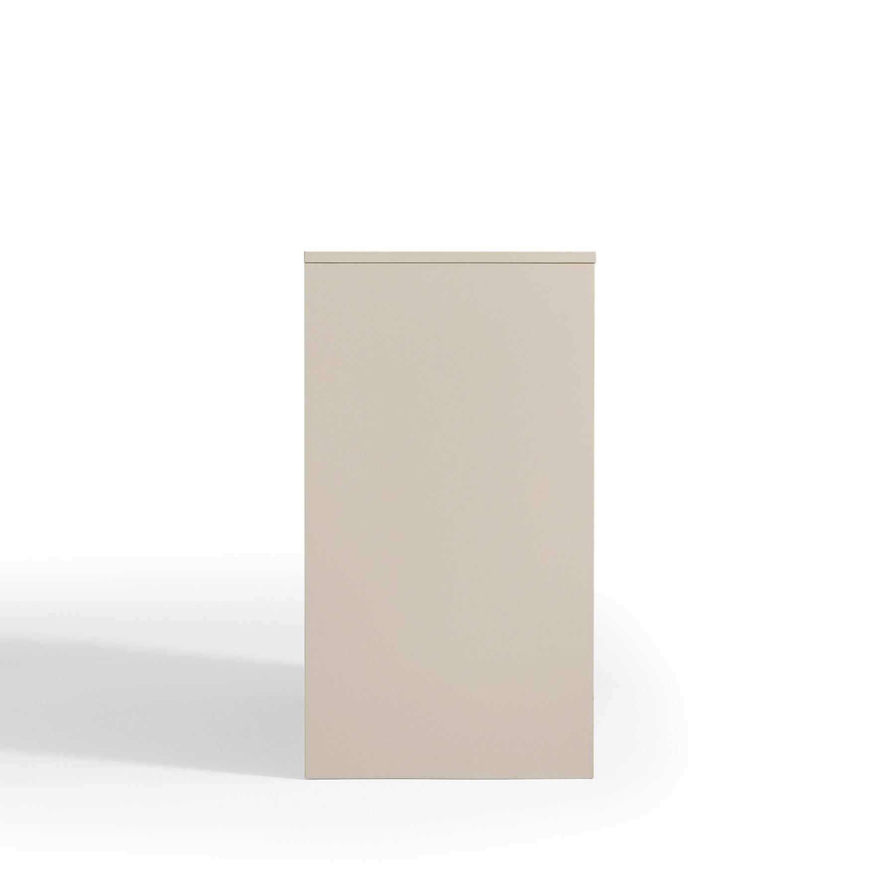 The streamlined silhouette and concealed drawers create a contemporary focal point for bedrooms, home offices, or living rooms, offering ample enclosed storage and versatile organization, while the durable painted finish simplifies care and keeps belongings neatly out of sight.