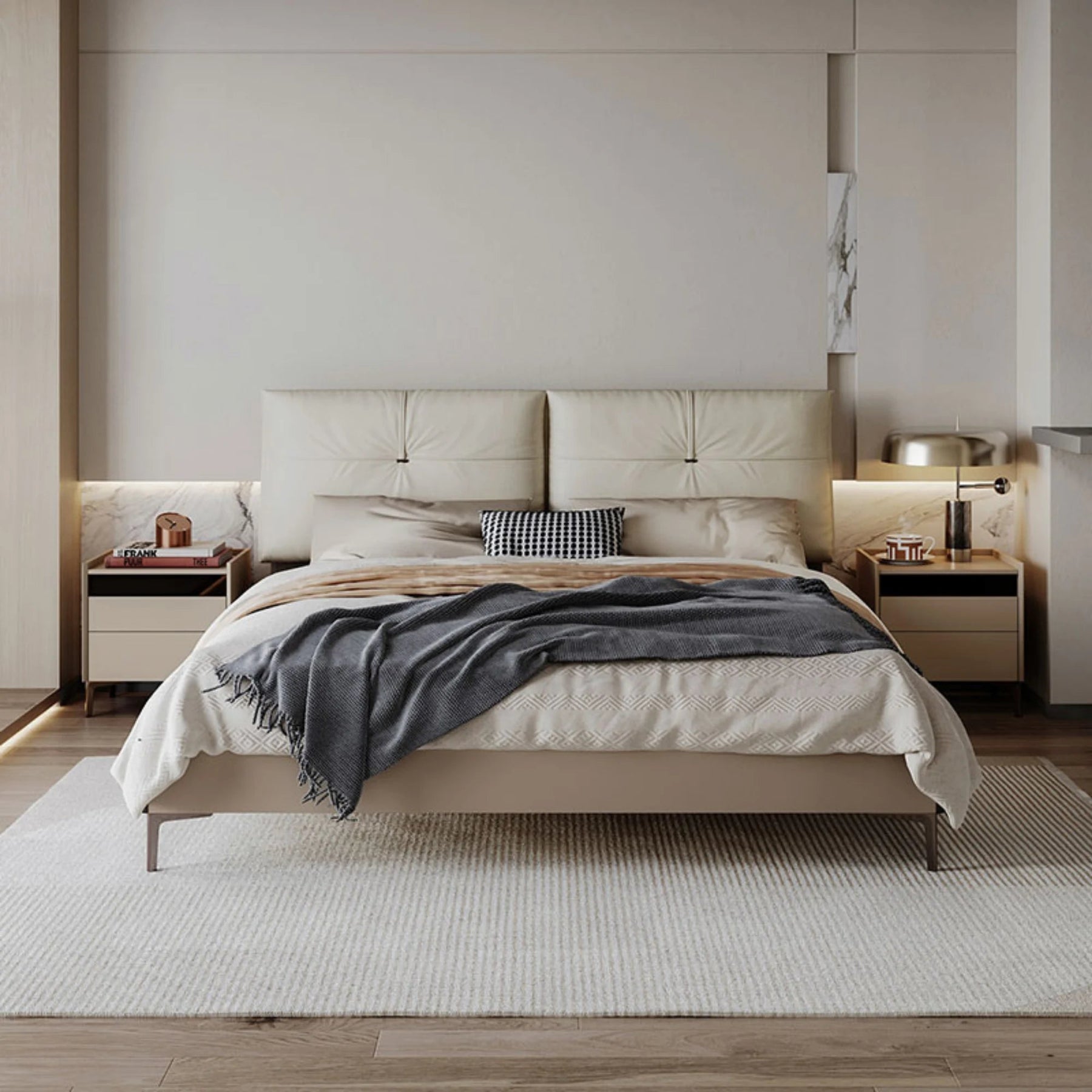 Glass Drawer Panels:Clear glass drawer panels deliver a refined, reflective surface that instantly enhances modern bedroom aesthetics.