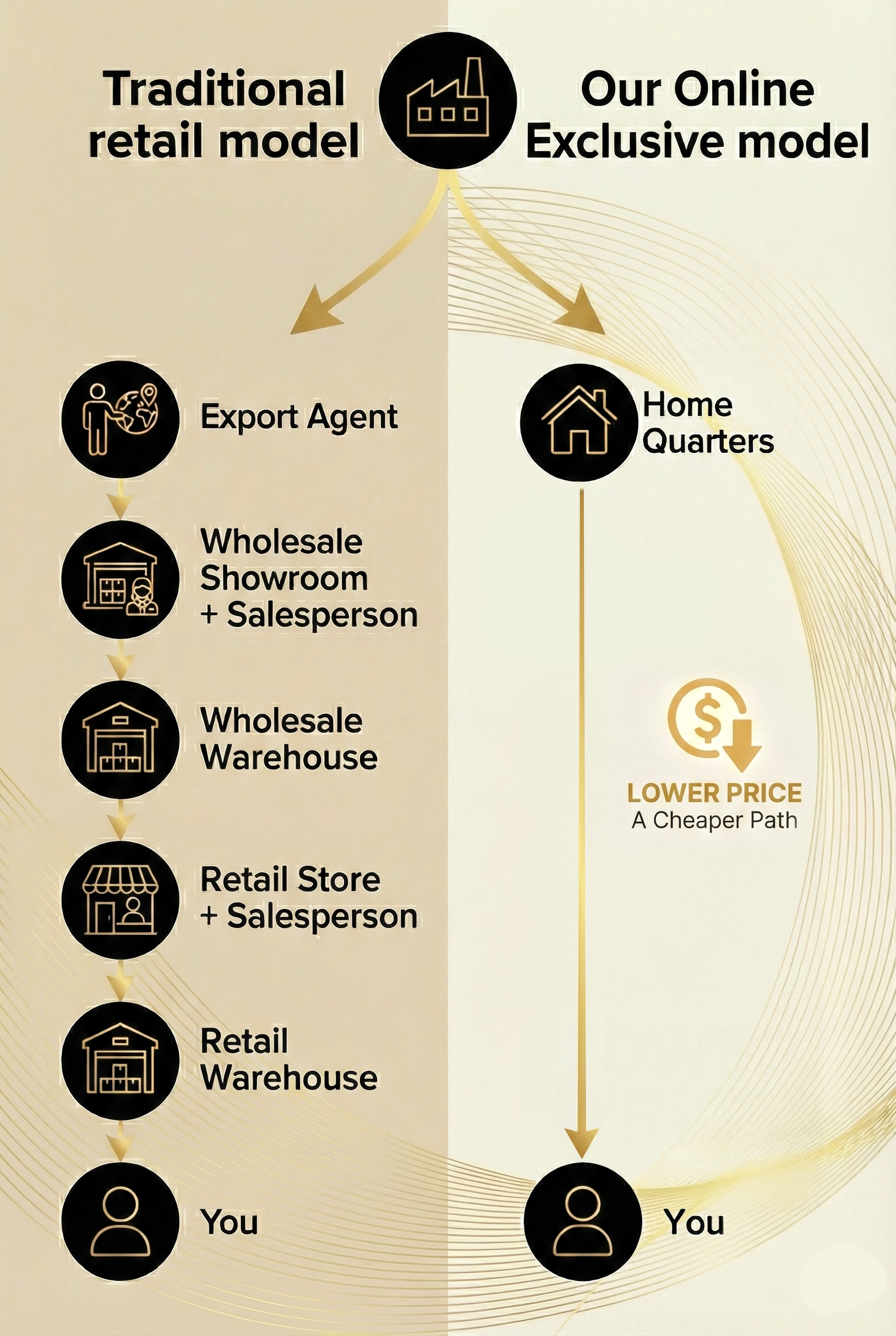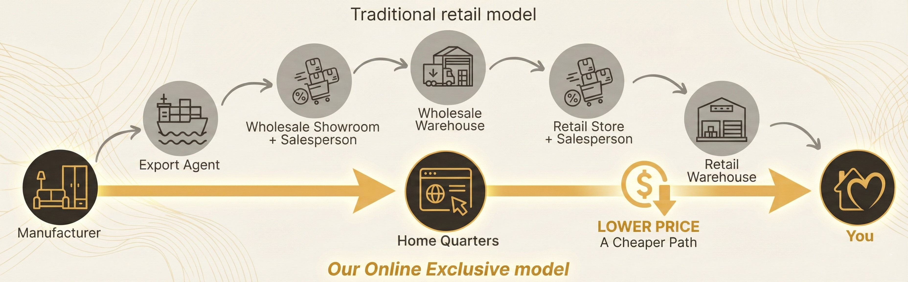 This collection is shipped via an efficient, low-touch route that prioritizes cost-savings over speed.