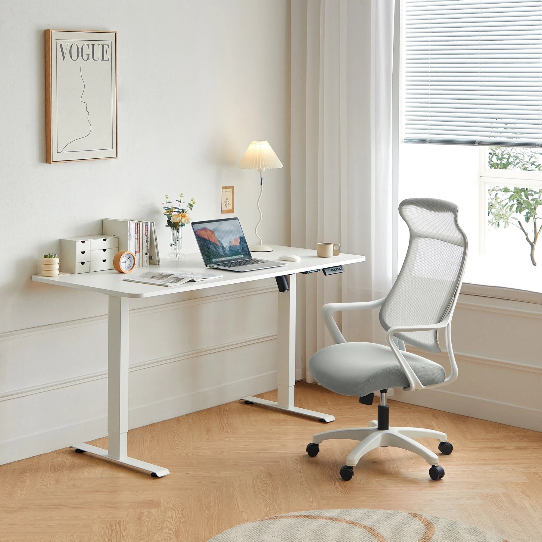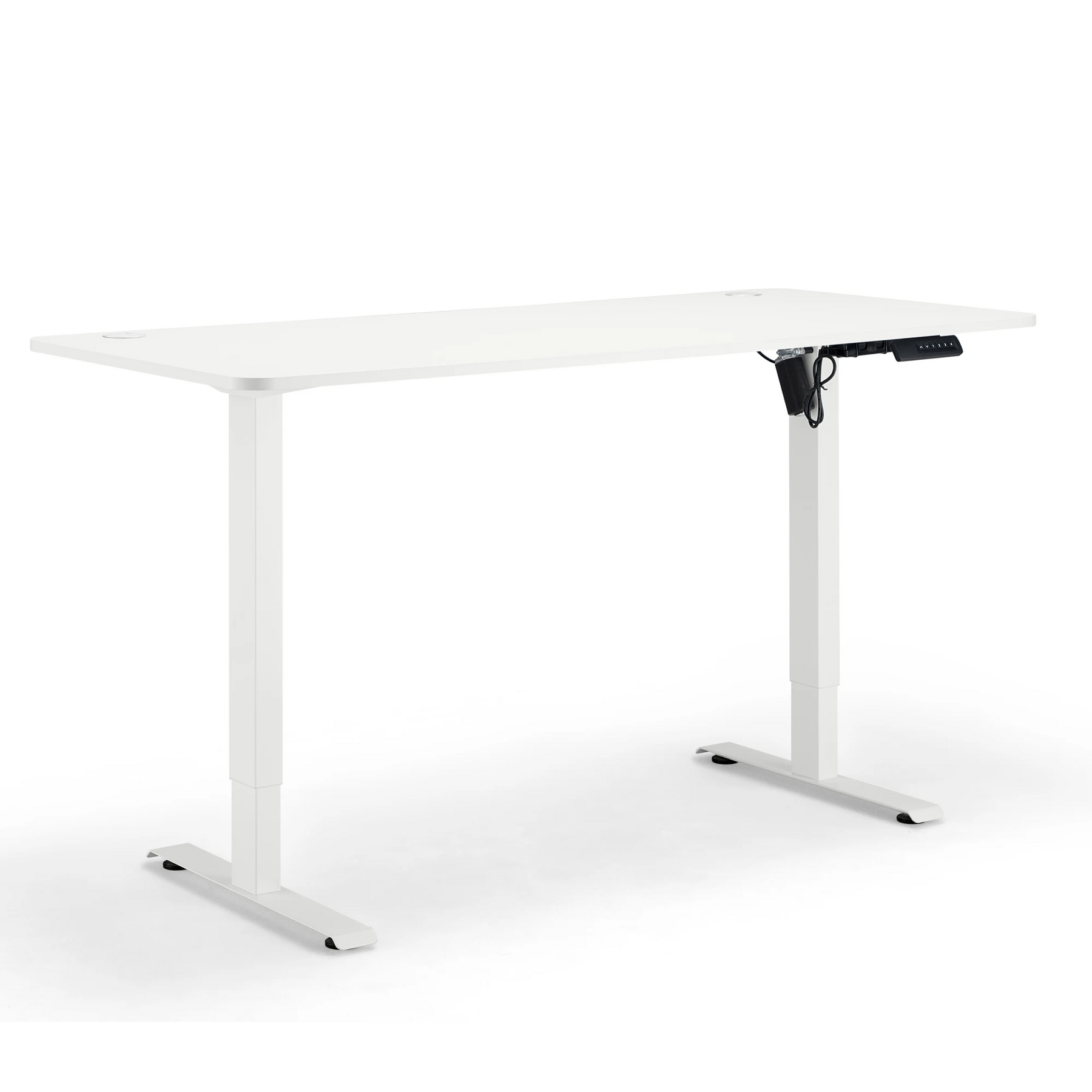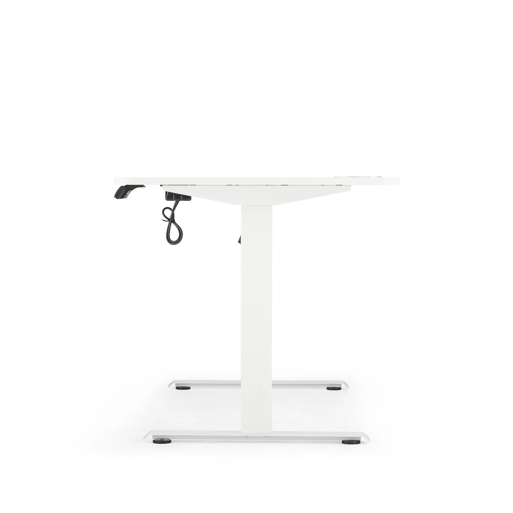 Electric Lift:Quiet single-motor system provides smooth, rapid height adjustments with programmable memory for consistent ergonomics. Build Quality:Robust steel frame and reinforced particleboard desktop ensure stability and durable support for heavy setups. Design & Finish:White matte surface and minimalist profile deliver a modern, clean aesthetic suitable for any workspace. Cable Management:Integrated plastic grommet keeps cables organized and reduces clutter for a tidy, efficient workstation.