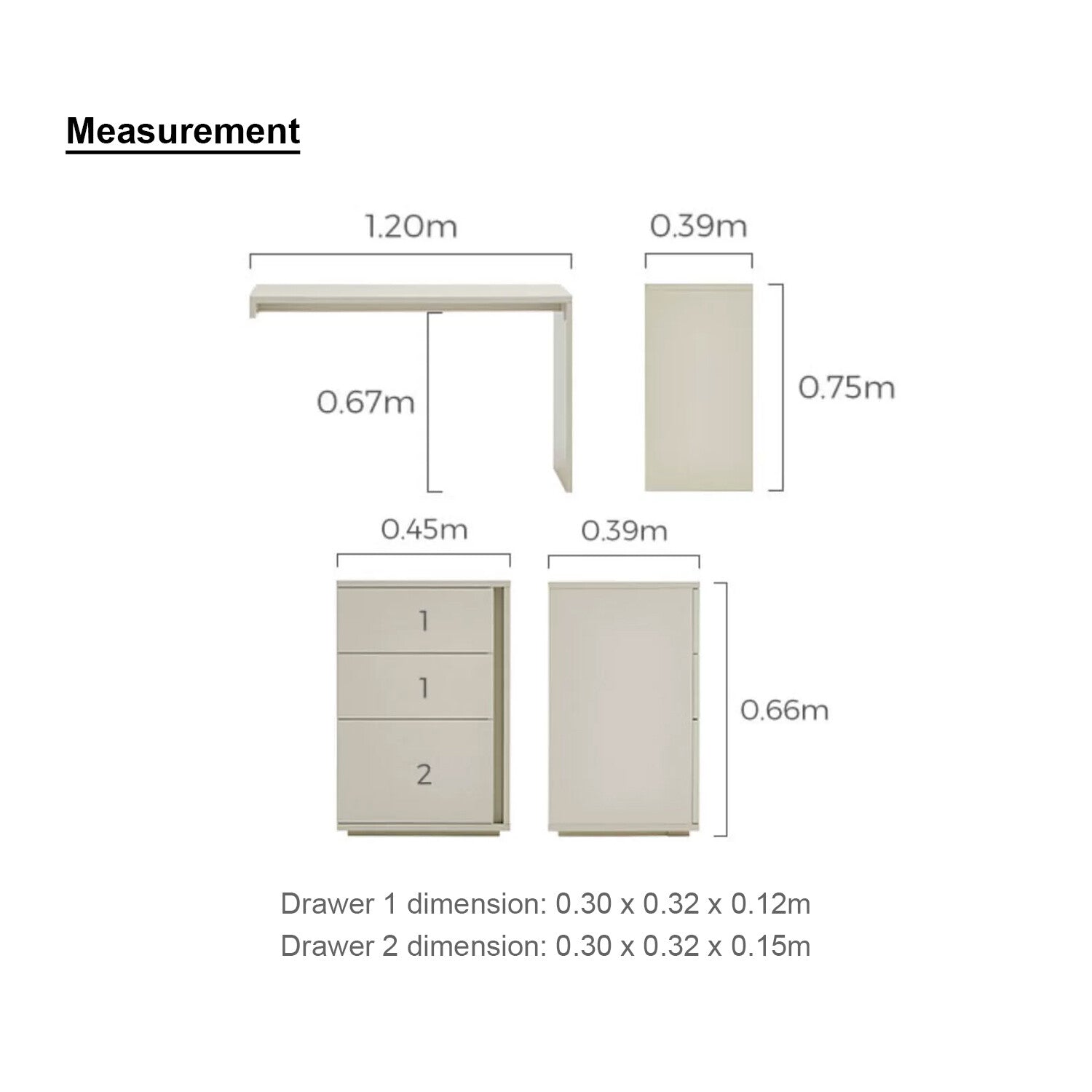 Three-Drawer Storage: Ample space for organization and accessibility.